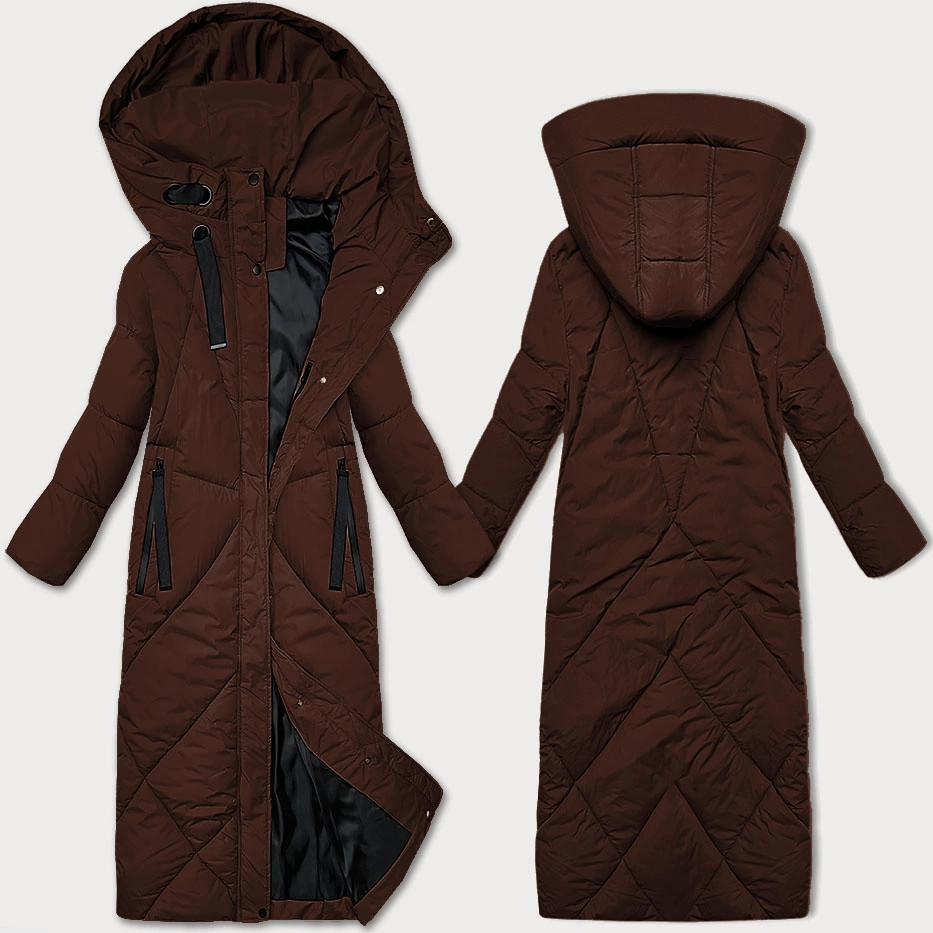 Hnědá dámská zimní bunda v délce ke kolenům J Style (5M3232-158)