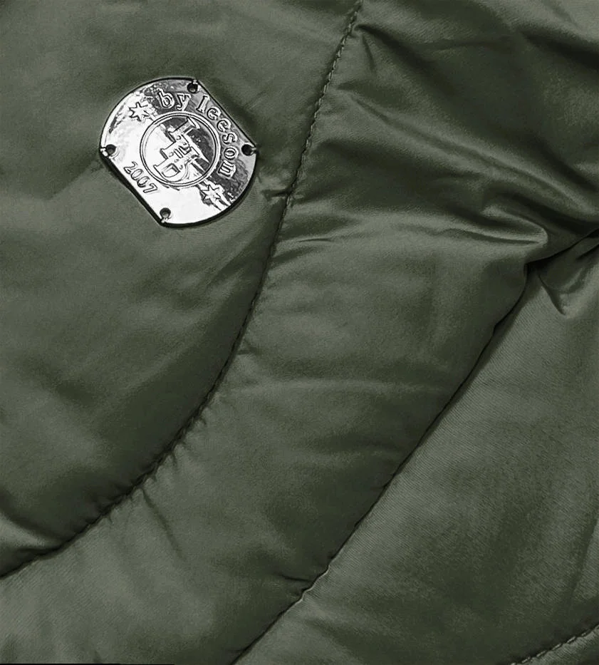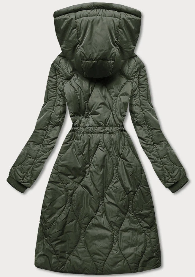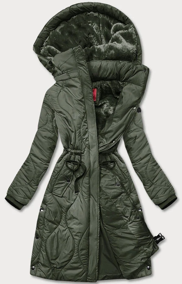 Dámská zimní bunda v olivové barvě v délce ke kolenům (m-21601)