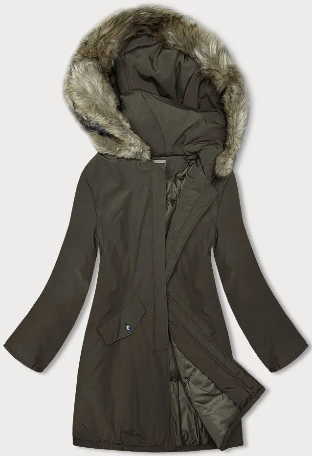 Dámská zimní bunda v khaki barvě (M-R45)