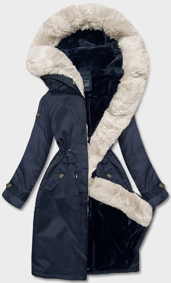 Tmavě modrá dámská zimní bunda s mechovitou kožešinovou podšívkou (B538-3046)