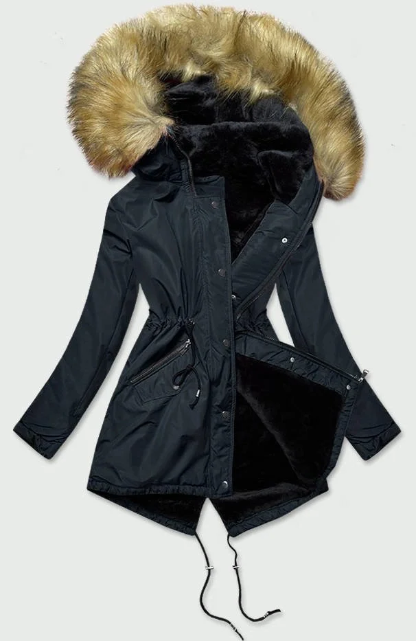Přidání recenze k Tmavě modrá dámská zimní bunda typu parka (b2628)