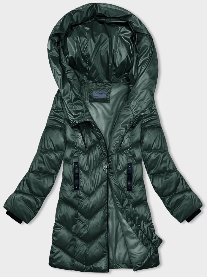 Tmavě zelená dámská zimní bunda s asymetrickým zipem (B8167-10)