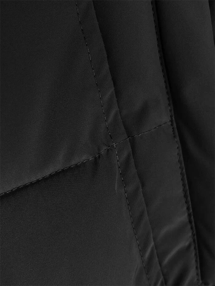 Bunda je vypasovaná, je zateplená vrstvou syntetické péřové výplně a má kožešinovou podšívku. Model má dvě kapsy a zapíná se zipem. Kapuci lemuje kožešina, kterou je možné odepnout. Na koncích rukávů jsou skryté stahovací lemy. Bunda má délku do poloviny stehen.