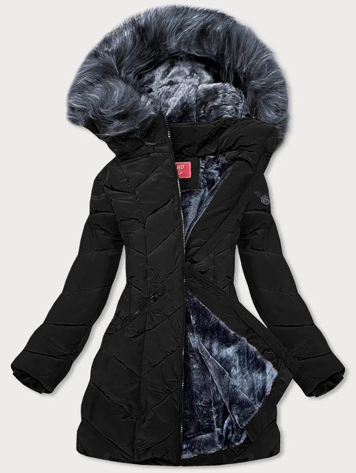 Přidání recenze k Černá dámská zimní bunda s kapucí (m-21308)