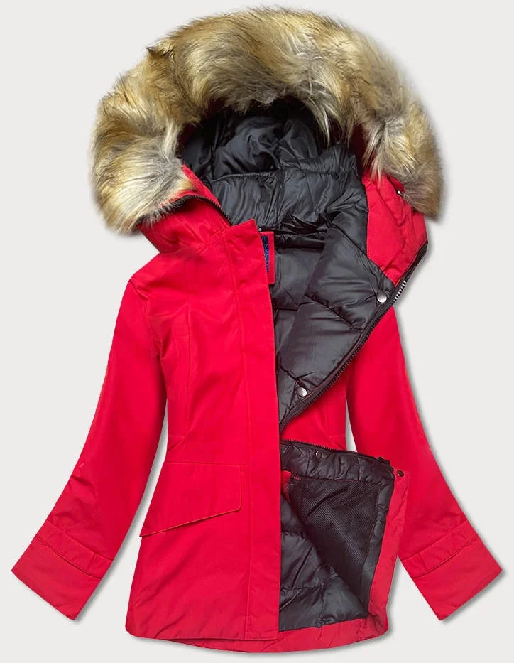 Červená dámská zimní bunda s kapucí (j9-066)