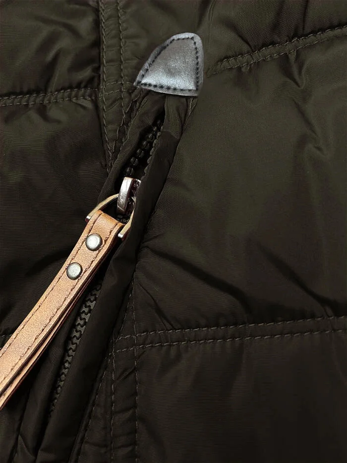 Bunda je vypasovaná, je zateplená vrstvou syntetické péřové výplně a má kožešinovou podšívku. Model má dvě kapsy a zapíná se zipem a panelem s patentkami. Kolem kapuce se táhne kožešina, kterou je možné odepnout. Na koncích rukávů jsou skryté stahovací lemy. Bunda má délku do poloviny stehen.