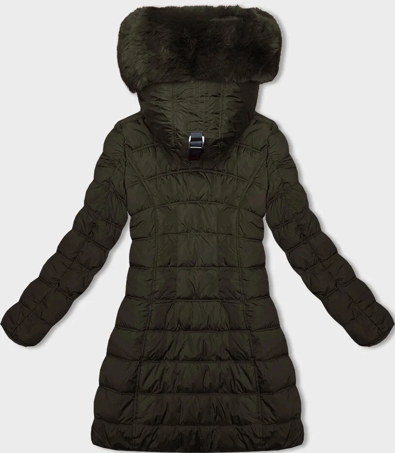 Dámská zimní bunda v khaki barvě s kapucí (2M-21013)