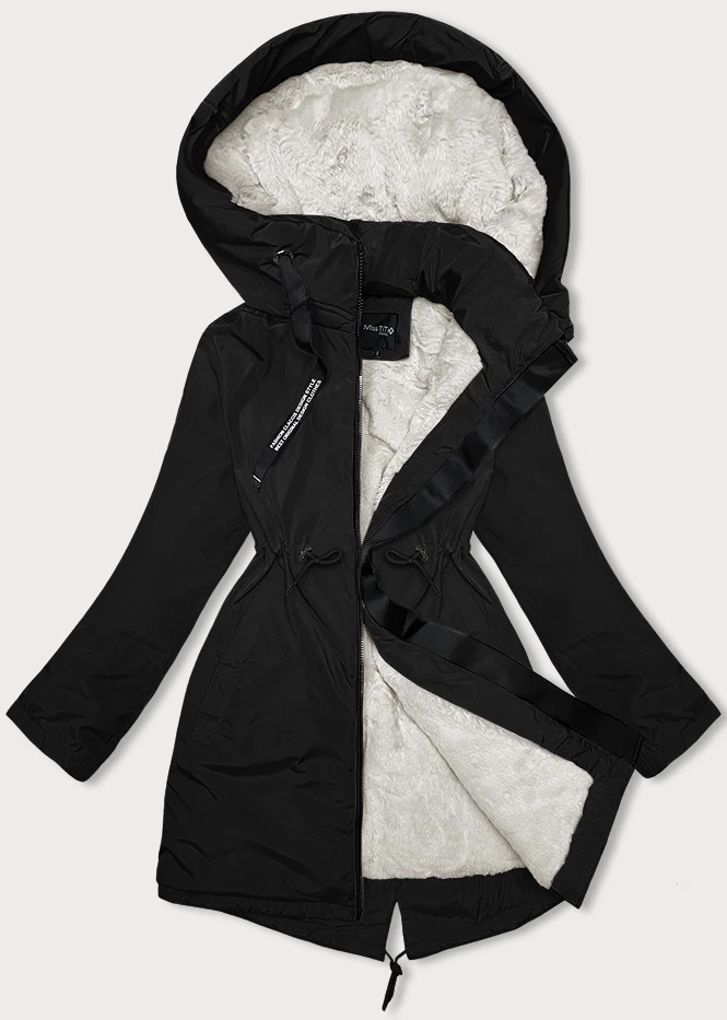 Černá dámská zimní bunda s kapucí Miss TiTi (H-3832)