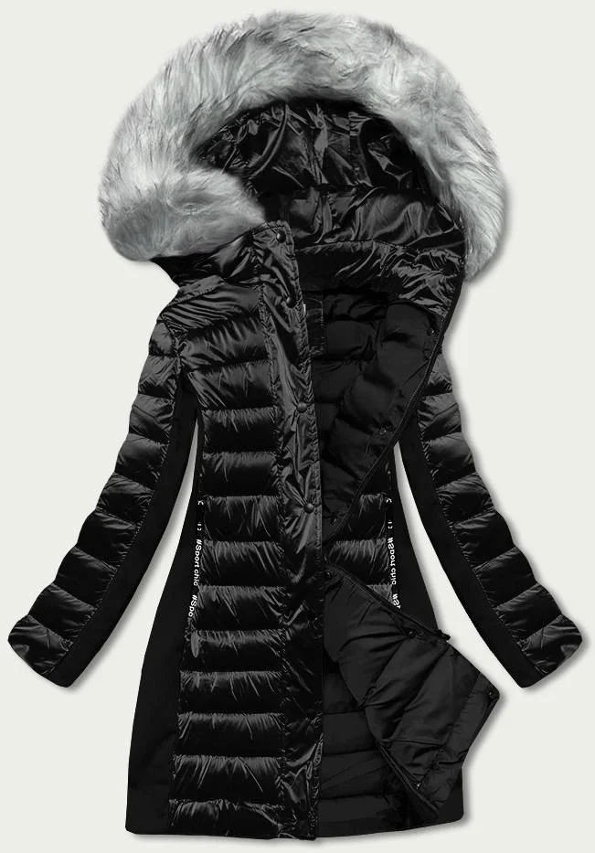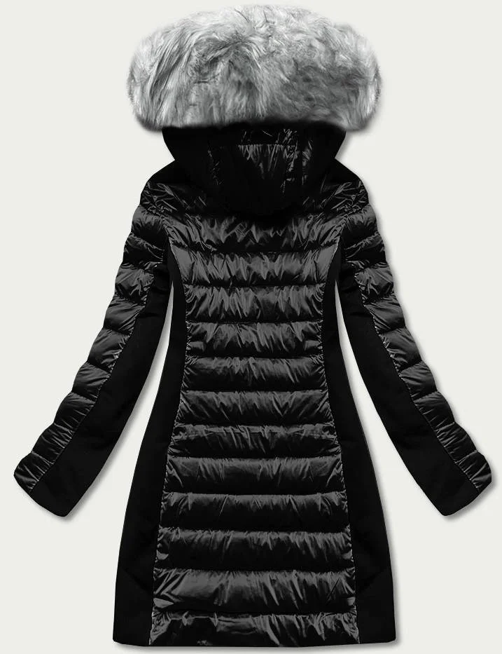 Černá dámská zimní bunda z různých spojených materiálů (dk067-1)