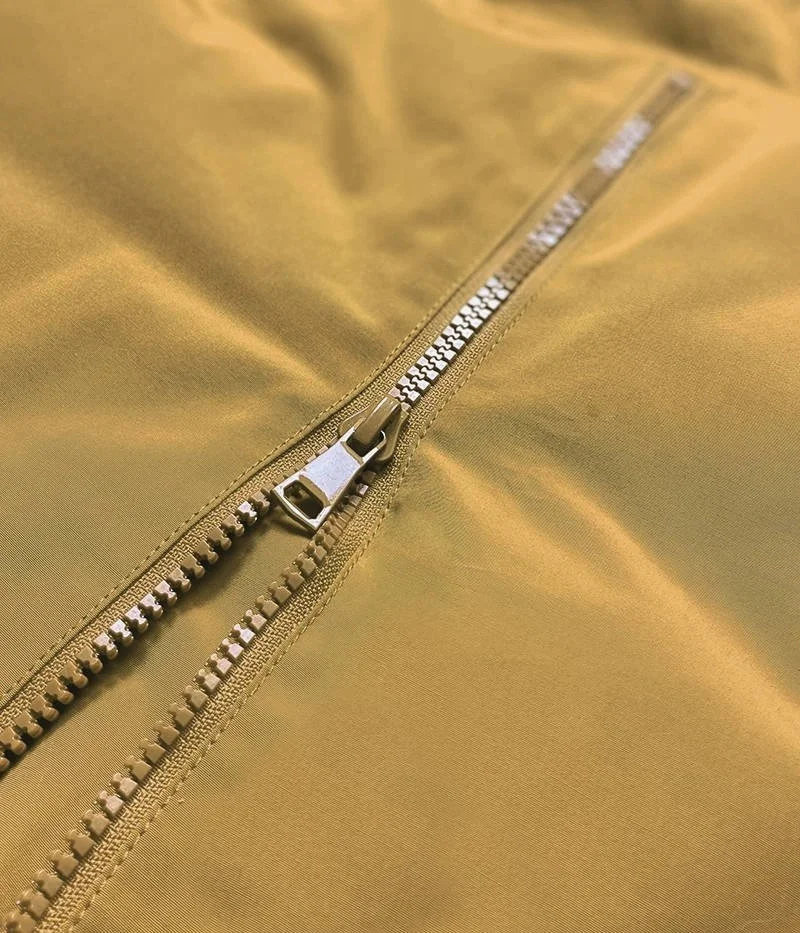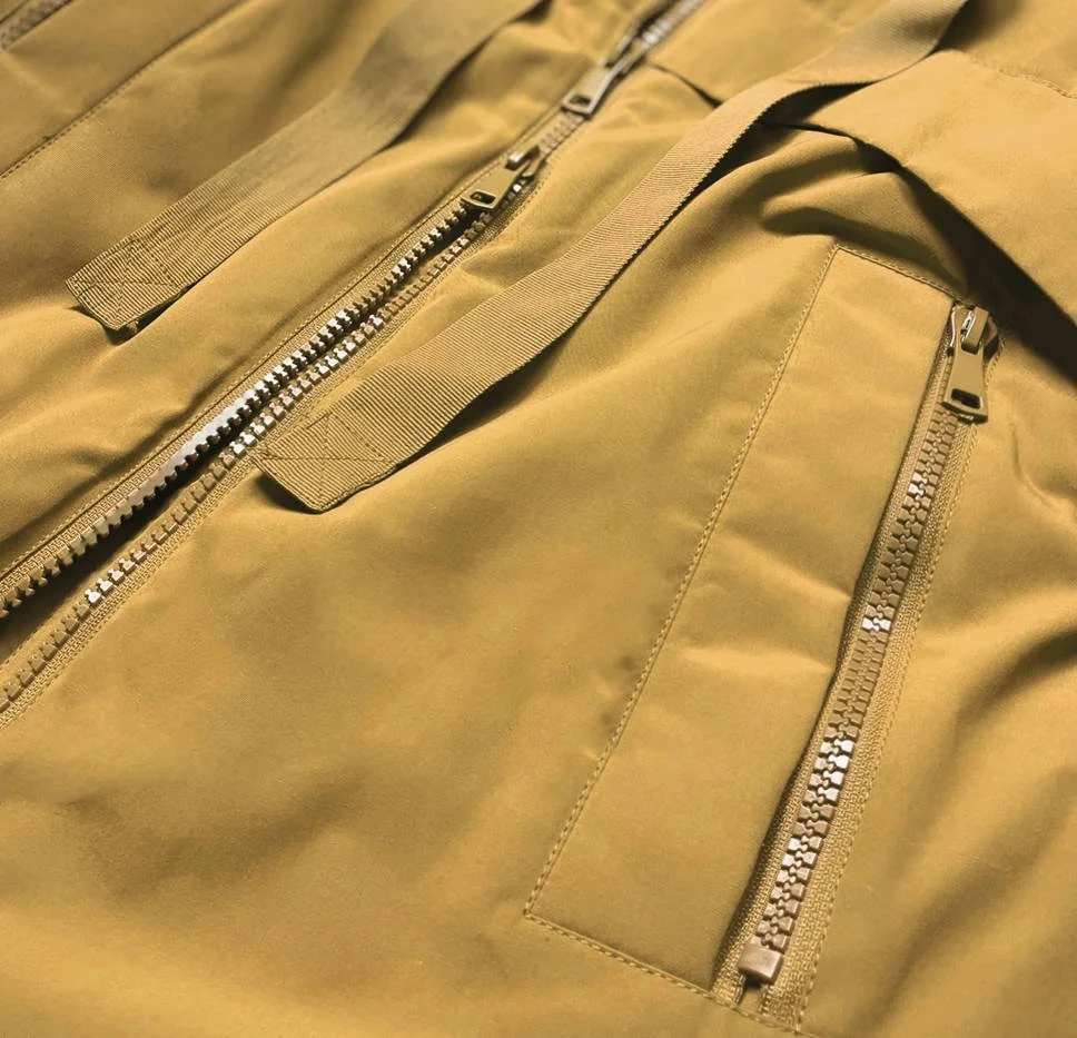 Bunda je zateplená syntetickou péřovou výplní a má dvě kapsy. Kapuce, rukávy a podšívka jsou prošívané a jsou vyrobené z jemného a kluzkého materiálu. Zbylou část bundy tvoří hladký matný materiál. Model má stojáček, který přechází do kapuce olemované kožešinou. Zatímco kapuci není možné odepnout, kožešinu lemující kapuci odepnout lze. Na koncích rukávů jsou skryté stahovací lemy. Bunda má vzadu zip, je jehož rozepnutí se model rozšíří o několik centimetrů.