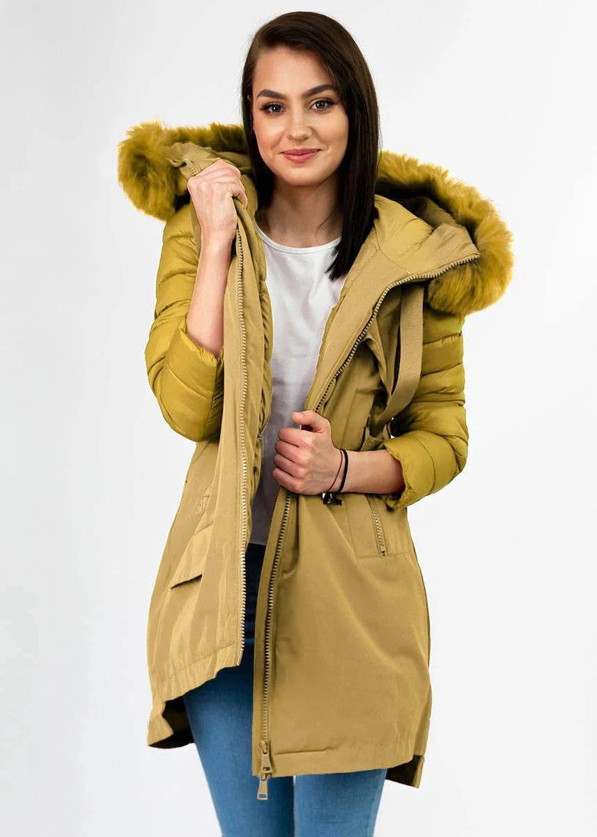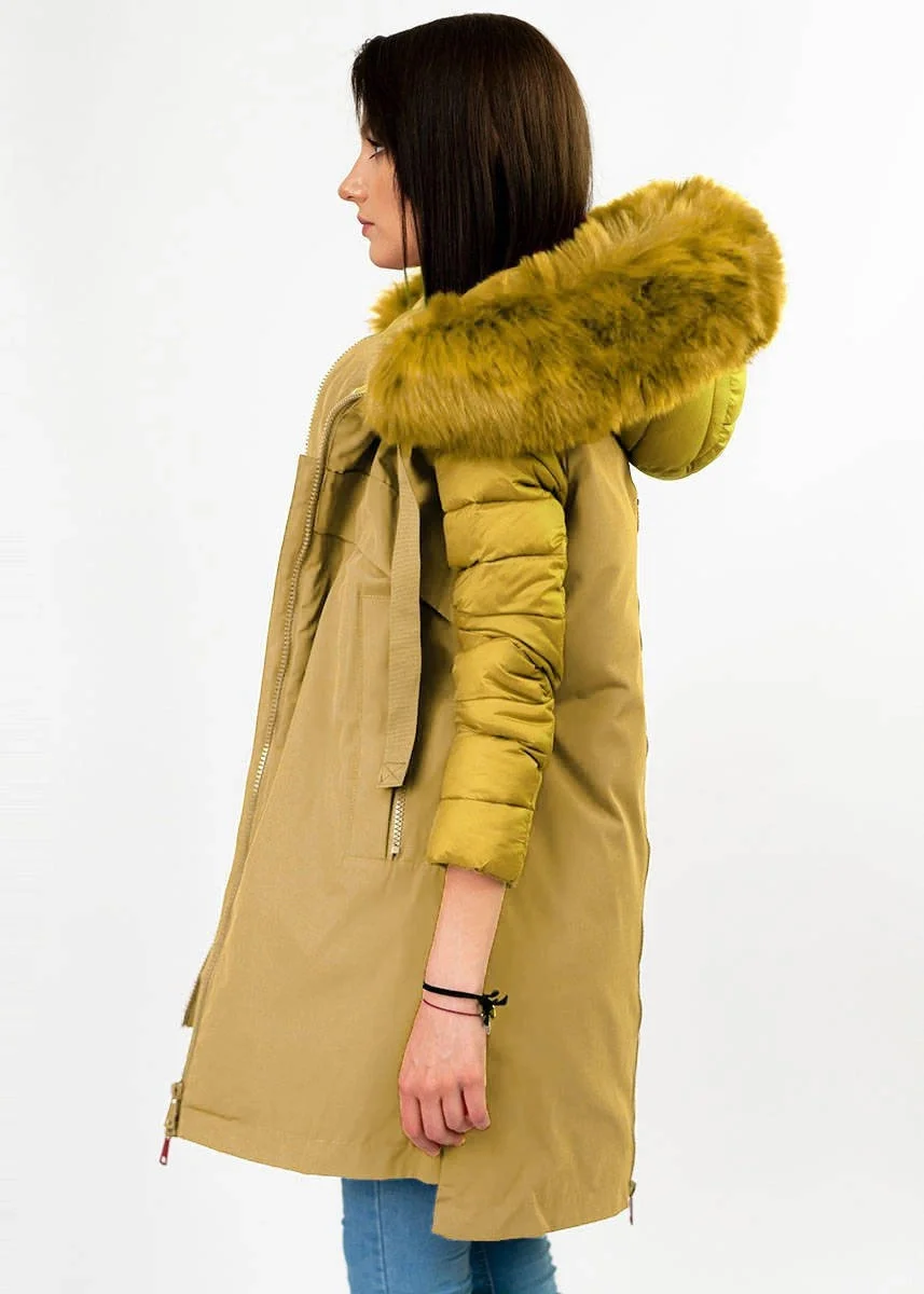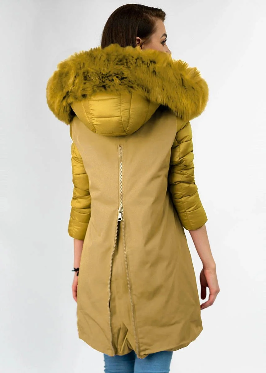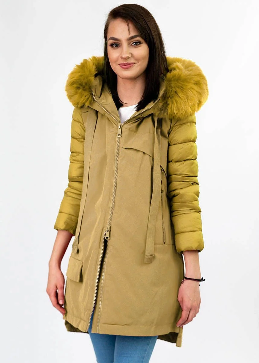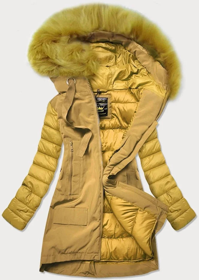 Žlutá dámská zimní bunda z různých spojených materiálů (7708)