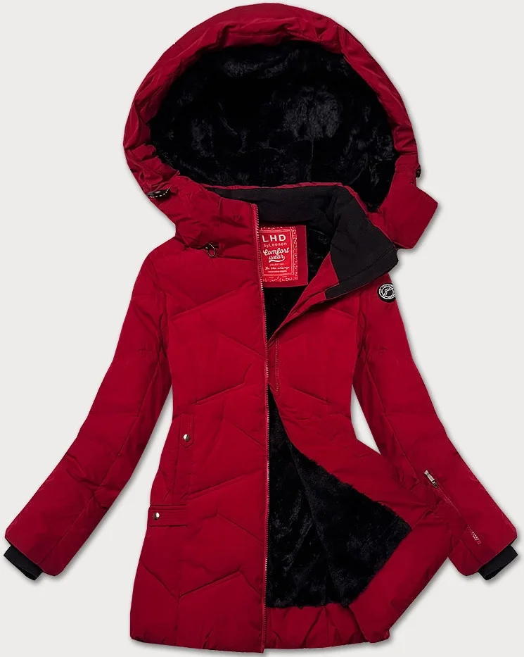 Dámská zimní bunda ve vínové bordó barvě s odepínací kapucí LHD (LHD-24577)