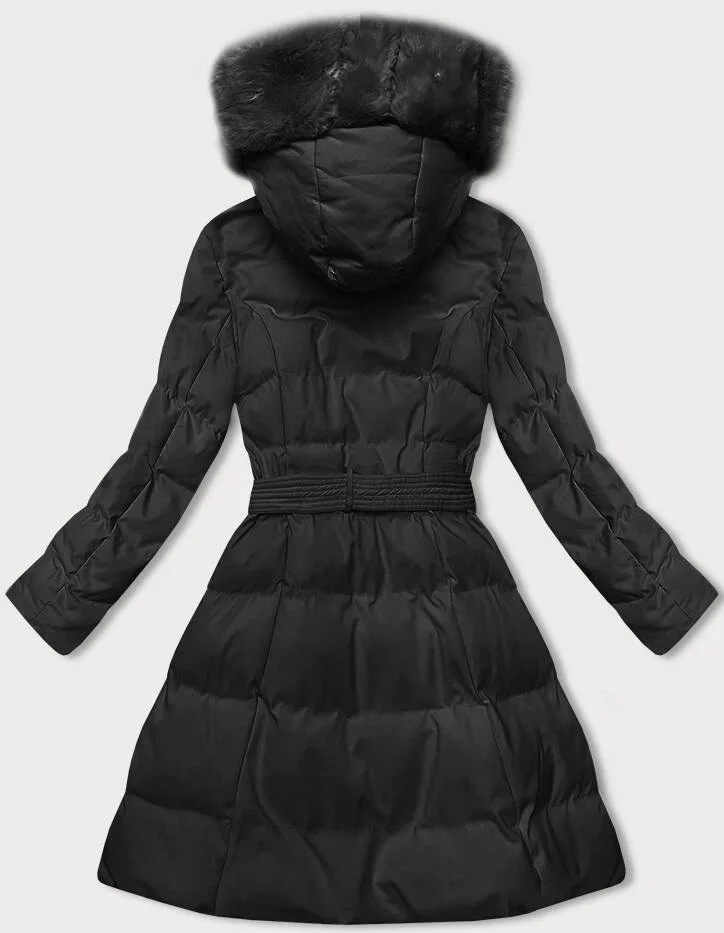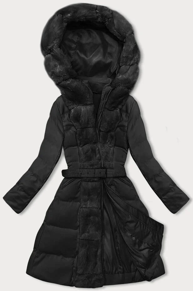 Černá dámská zimní bunda s ozdobnou kožešinou (5M3158-392)