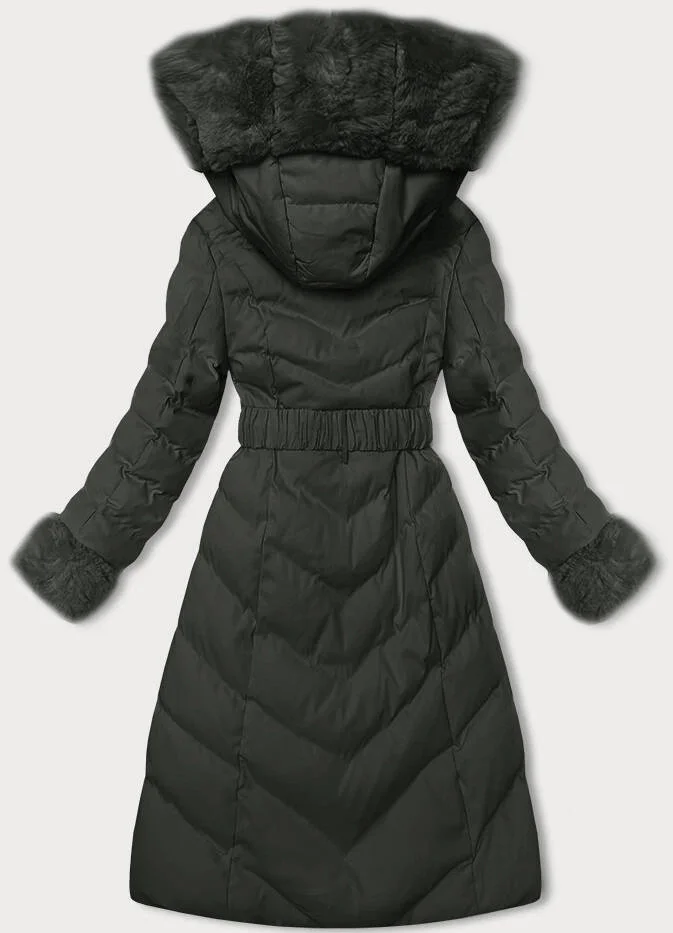 Dámská zimní bunda v army barvě s opaskem (5M3156-136)