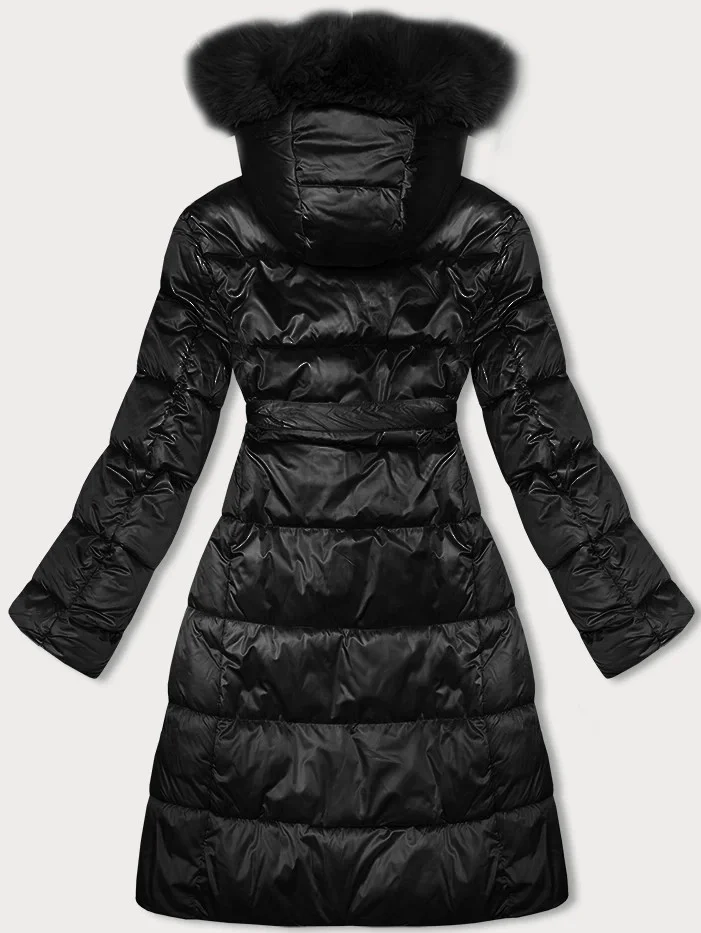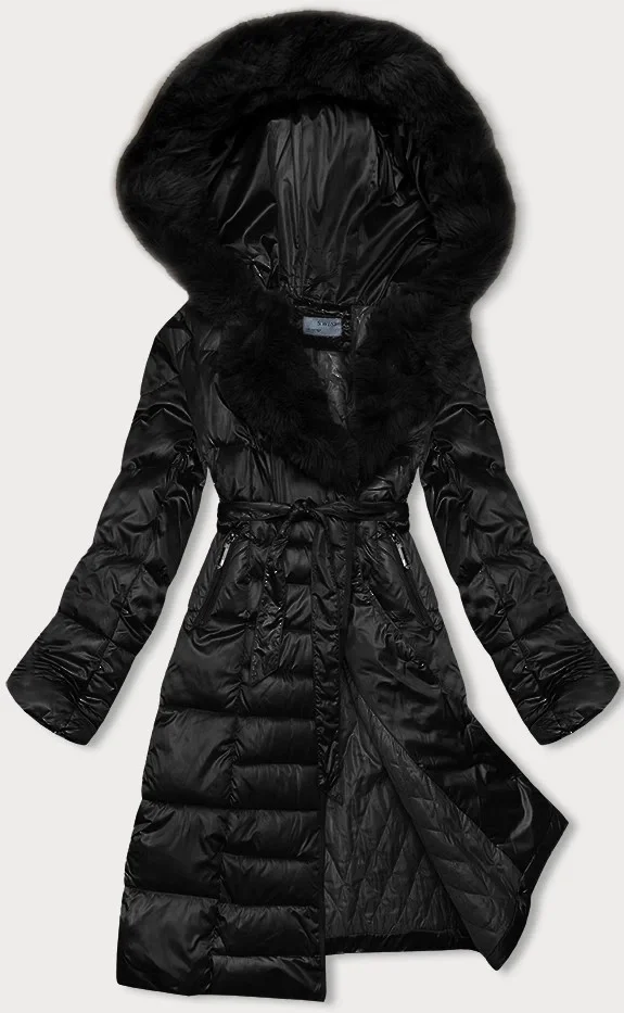 Černá dámská zimní bunda s páskem S'west (B8195-1)
