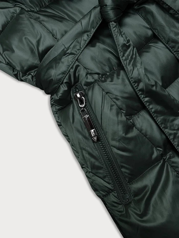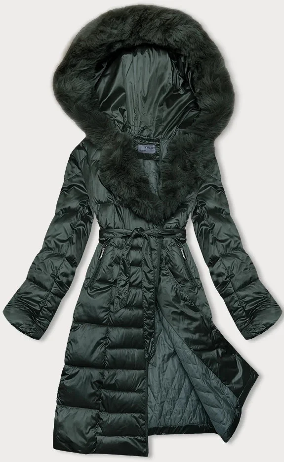 Tmavě zelená dámská zimní bunda s páskem S'west (B8195-10)