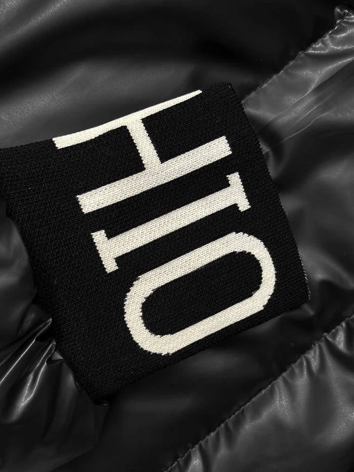 Bunda je zateplená syntetickou péřovou výplní, má dvě kapsy bez zapínání a zapíná se dvousměrným zipem. Model má kapuci, kterou není možné odepnout. Přední část bundy má délku k bokům a zadní část má délku pod boky.