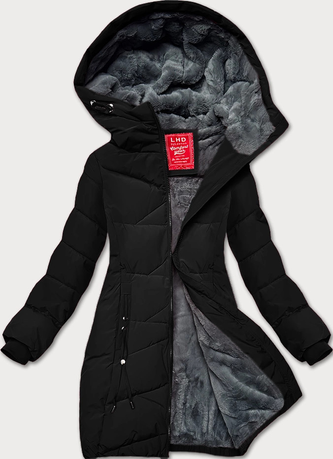 Černá dámská zimní bunda se stahovacími lemy LHD (LHD-24580)