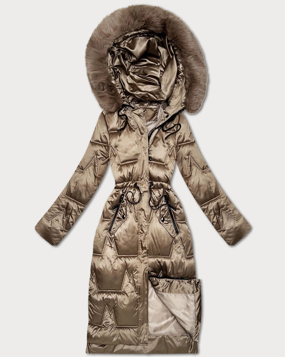Tmavě béžová dámská zimní bunda se stahováním v pase S'West (B8522-12)