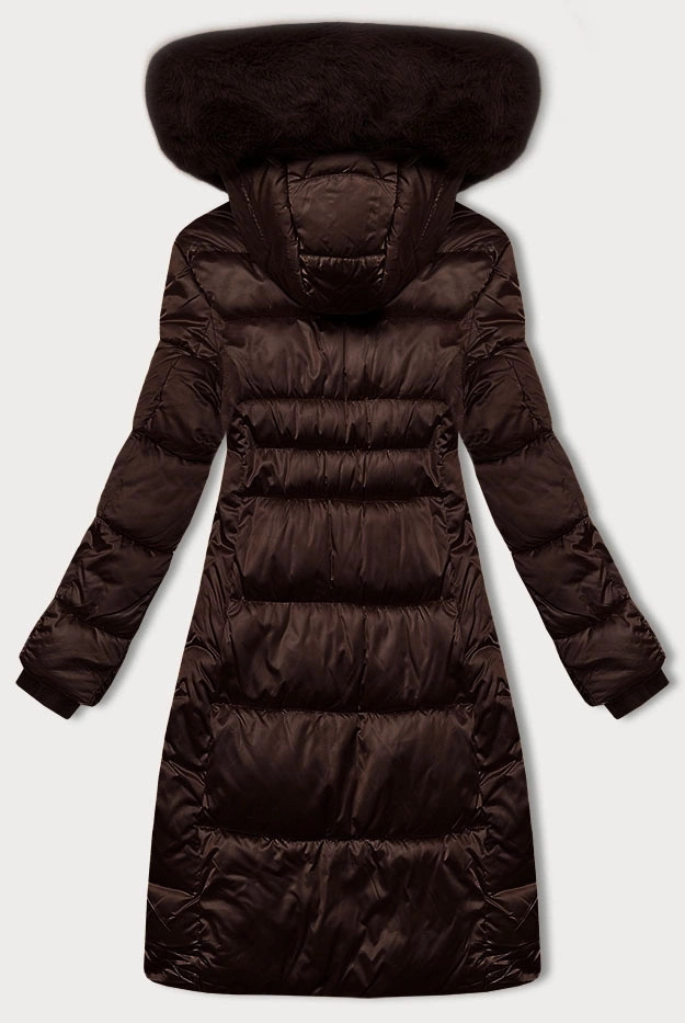 Zimní prošívaná plus size bunda v čokoládové barvě s kapucí S'west (B8267-14)